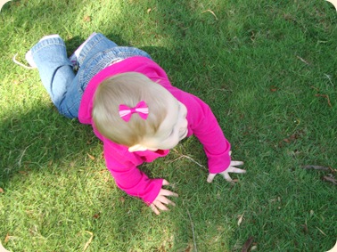 This picture below is funny… Aubrey is holding on for dear life to the moving swing and Lola is left by her lonesome self sitting in her Bumboo in the background.  What great moms are we?? LOL