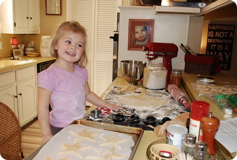 Lola and I baked sugar cookies yesterday and rolled them out and the mess she made with flour was unreal.  It was everywhere!  And I laughed as she rolled the rolling pin just like Nonna does.  You never realize someone has rolling pin style until you see someone else copy them.  It was crazy how I instantly knew that was the exact way my mom rolls out her cookie dough… I need a video of this.  BUT I did manage a few pictures…